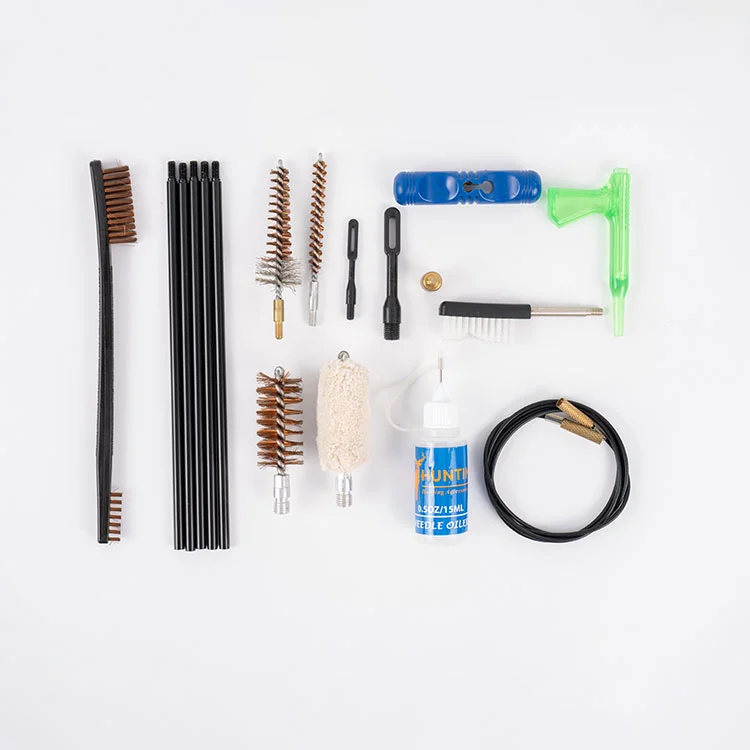 مقبض مخصص واحد، 3 قطع من فرش التجويف (12 جيجا، .223 كالوري)، قطعة واحدة من فرشاة تجويف الغرفة النجمية (5.56 ملم)، قطعة واحدة من مصباح التجويف 3 في 1، قطعة واحدة ممسحة (12 جيجا)، قطعة واحدة من فرشاة التنظيف مع 8-32 خيط، قطعة واحدة من فرشاة التنظيف النحاسية، قطعة واحدة من أدوات سحب التصحيح